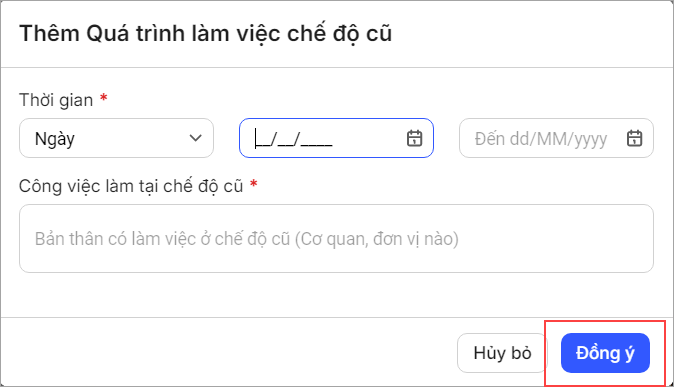 - Ngày tham gia cách mạng: Nhập ngày/tháng/năm tham gia cách mạng (nếu có).