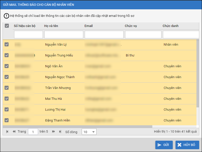 - Nhấn Lưu để thêm đợt bổ sung lý lịch mới, hiển thị khi CBNV đăng nhập vào phần mềm. Hoặc nhấn Lưu và gửi email để thông báo đến email của CBNV.