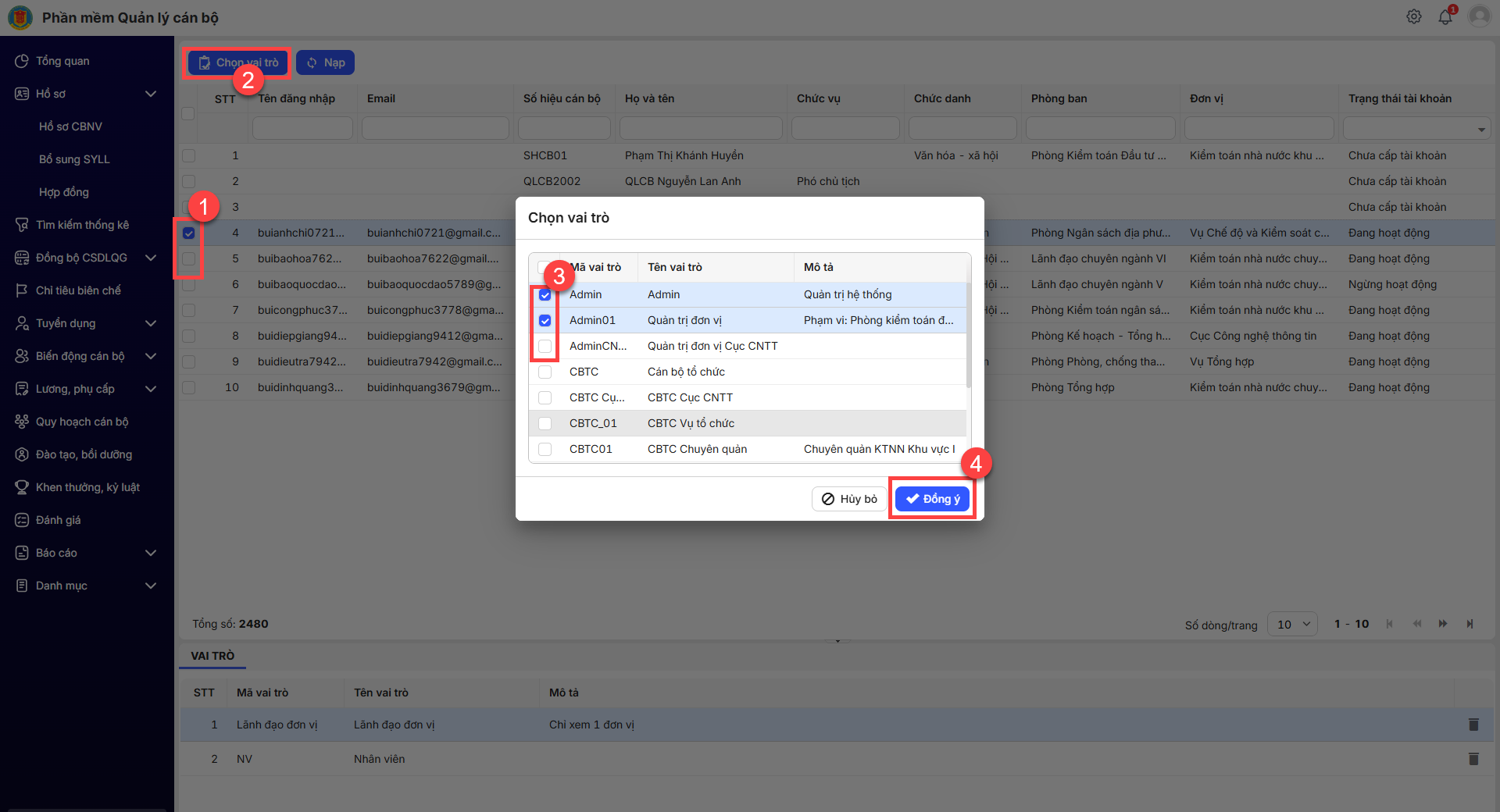 3. Chọn vai trò cho CBCCVC. Nhấn Đồng ý.