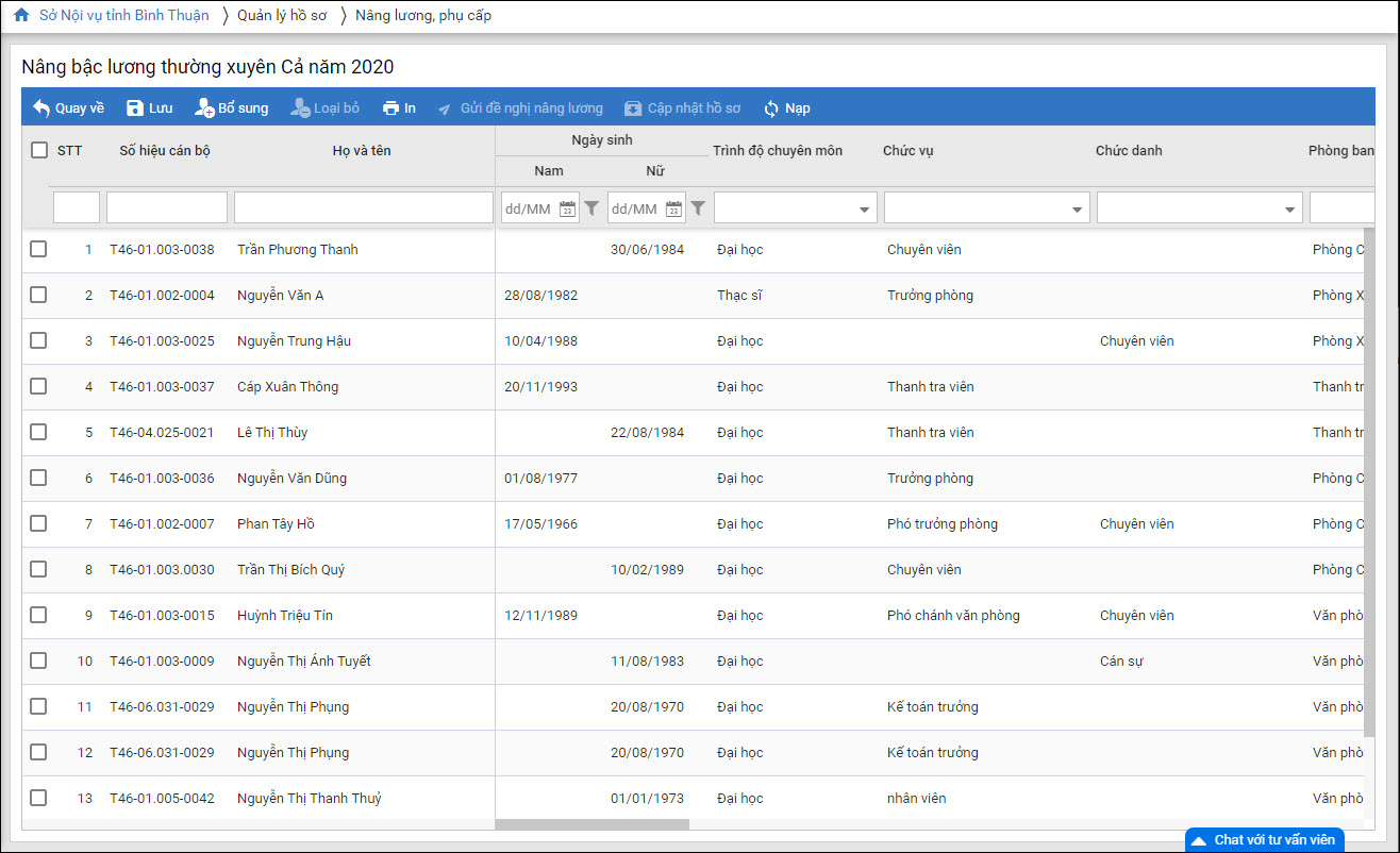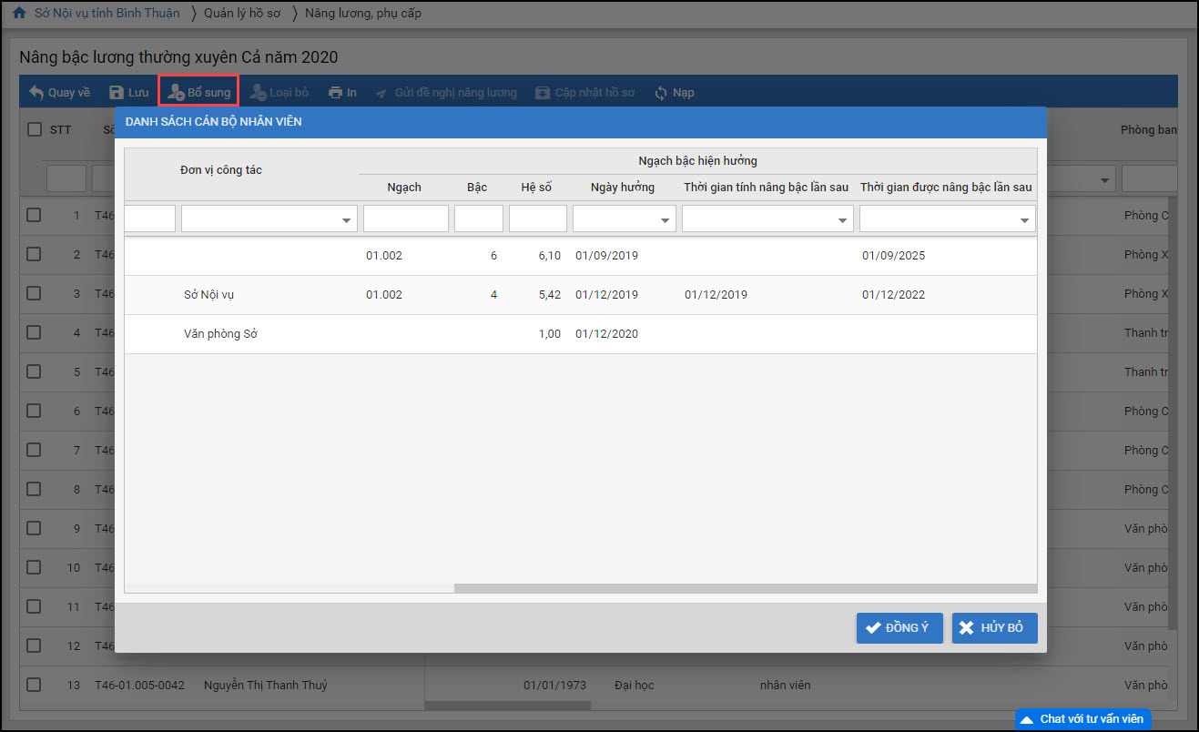 - Tại mục Quản lý hồ sơ\Nâng lương, phụ cấp: Thay đổi cách lấy lên danh sách đề nghị nâng lương:
