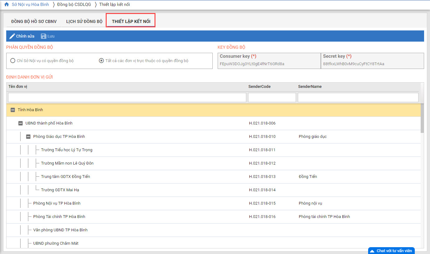 - Đối với CBTC đơn vị cấp dưới được phân quyền đồng bộ lên CSDLQG: