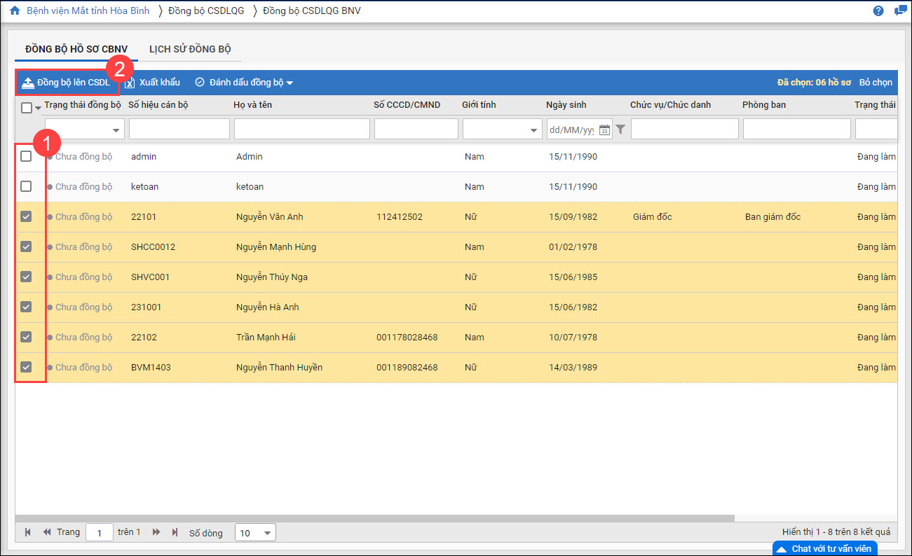 - Thực hiện đồng bộ hồ sơ CBNV tại đơn vị mình.