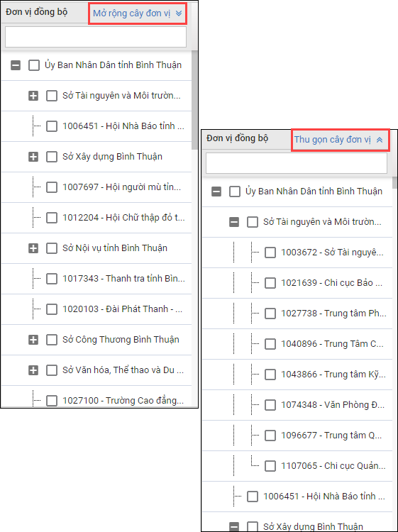 - Bổ sung tùy chọn để người dùng tùy chỉnh cách xem cây đơn vị: Mở rộng/Thu gọn cây đơn vị.