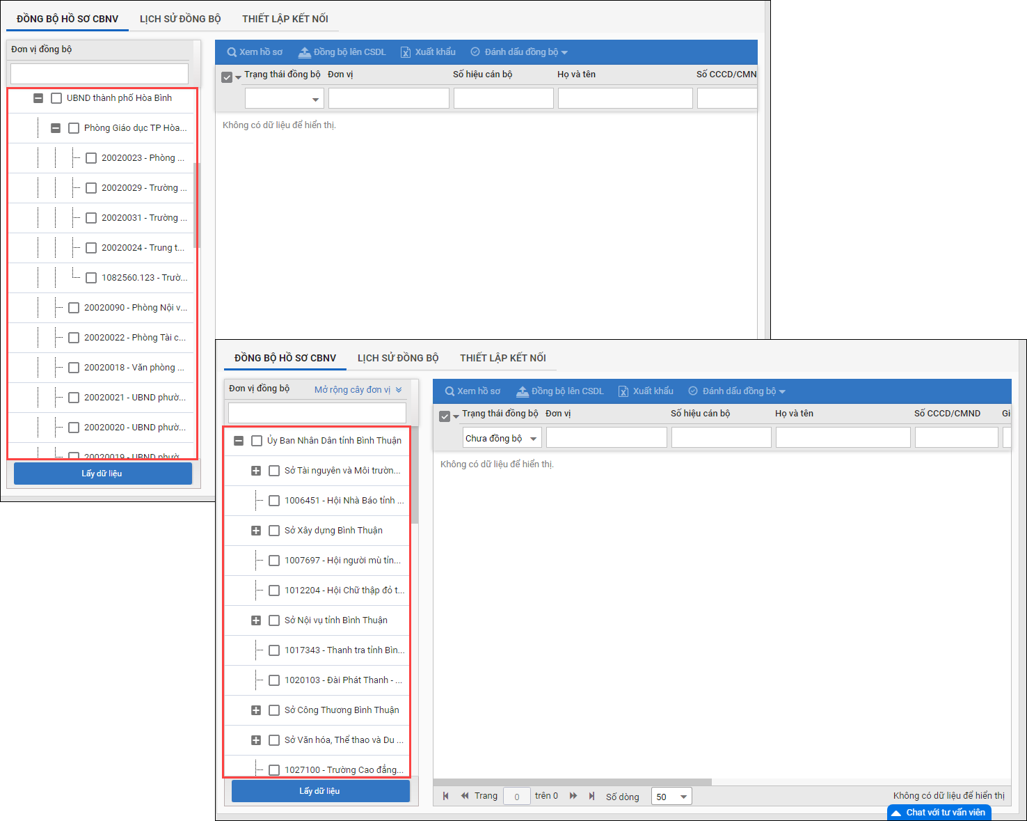 - Với đơn vị trực thuộc: Xem theo số liệu trong đơn vị.