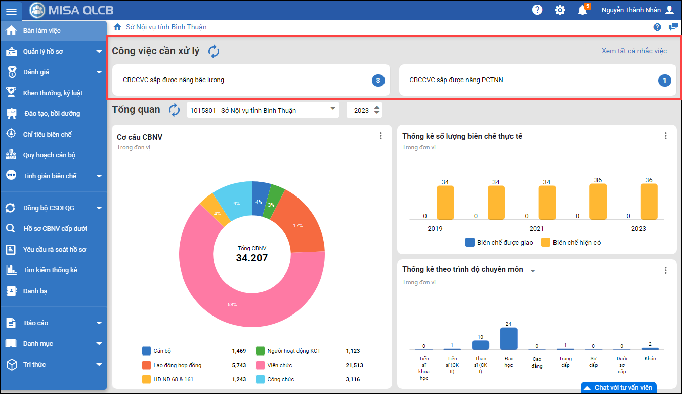 - Hiển thị một số thông báo nhắc việc quan trọng ra bên ngoài, tại mục Công việc cần xử lý.