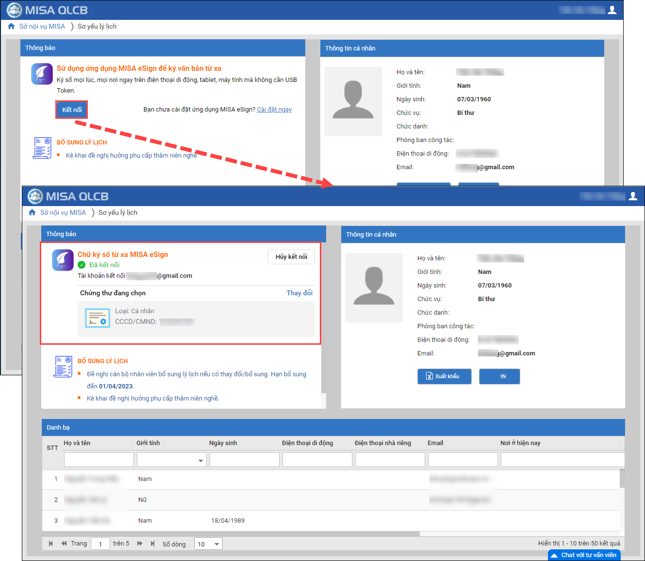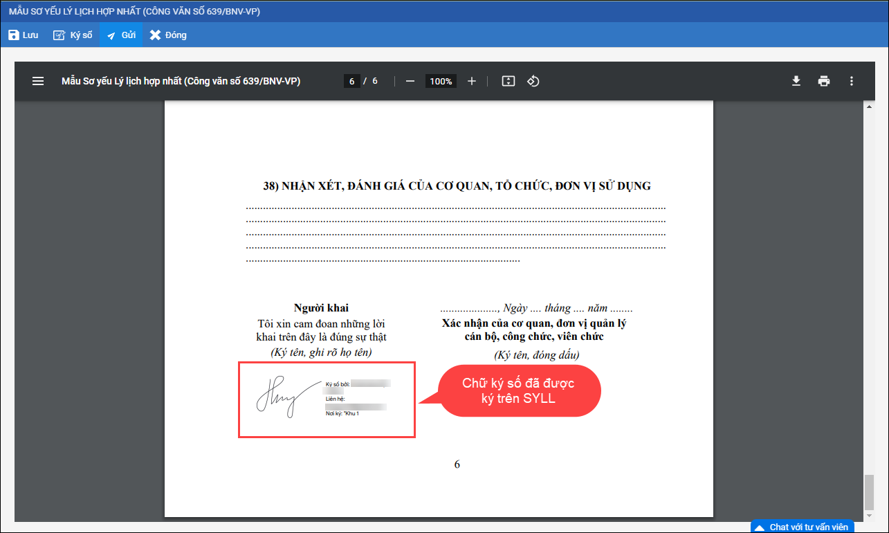 - Sau khi bổ sung lý lịch định kỳ, thực hiện ký số để gửi lên CBTC đơn vị chủ quản.
