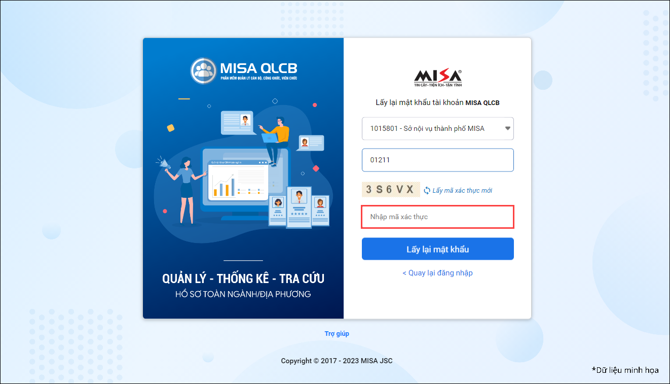 1. CBNV muốn các thông báo rõ ràng hơn khi sử dụng quên mật khẩu của phần mềm MISA QLCB