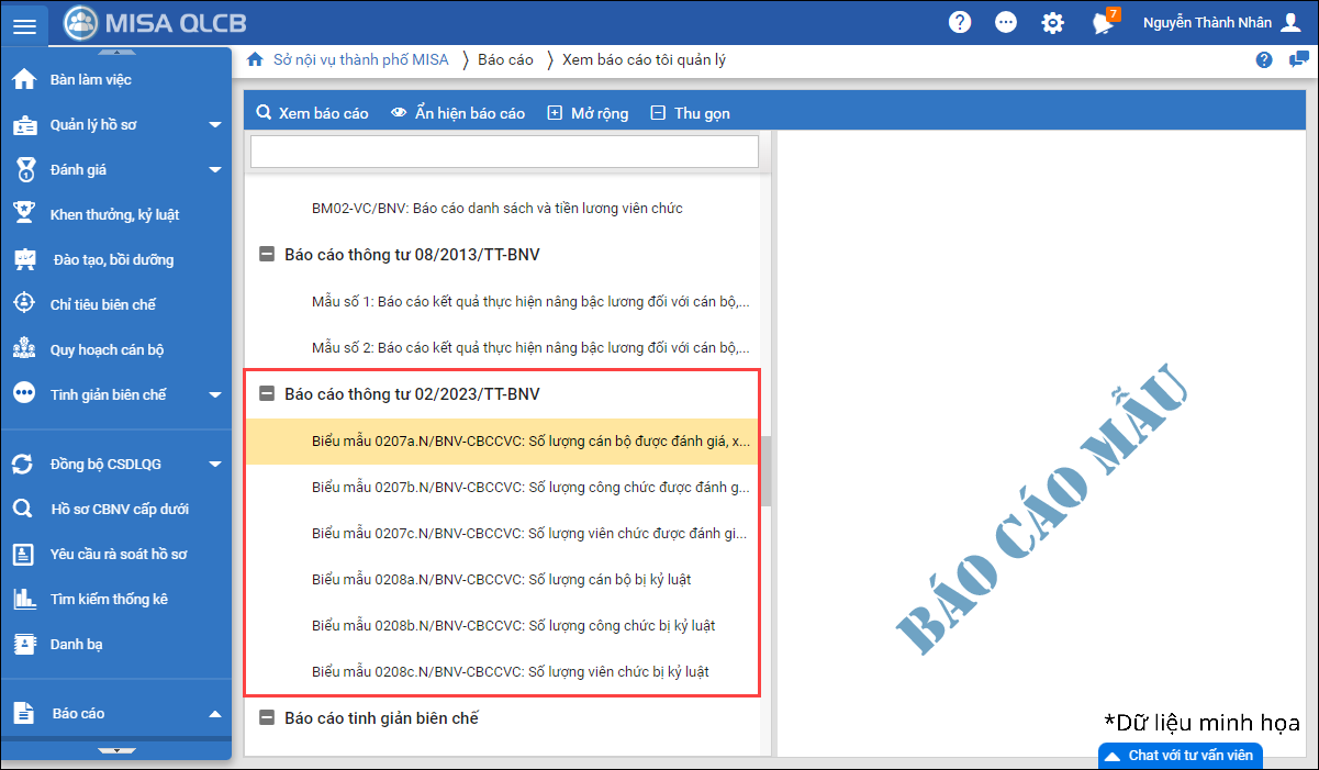 - Bổ sung mẫu báo cáo vào nhóm báo cáo Thông tư 02/2023/TT-BNV.